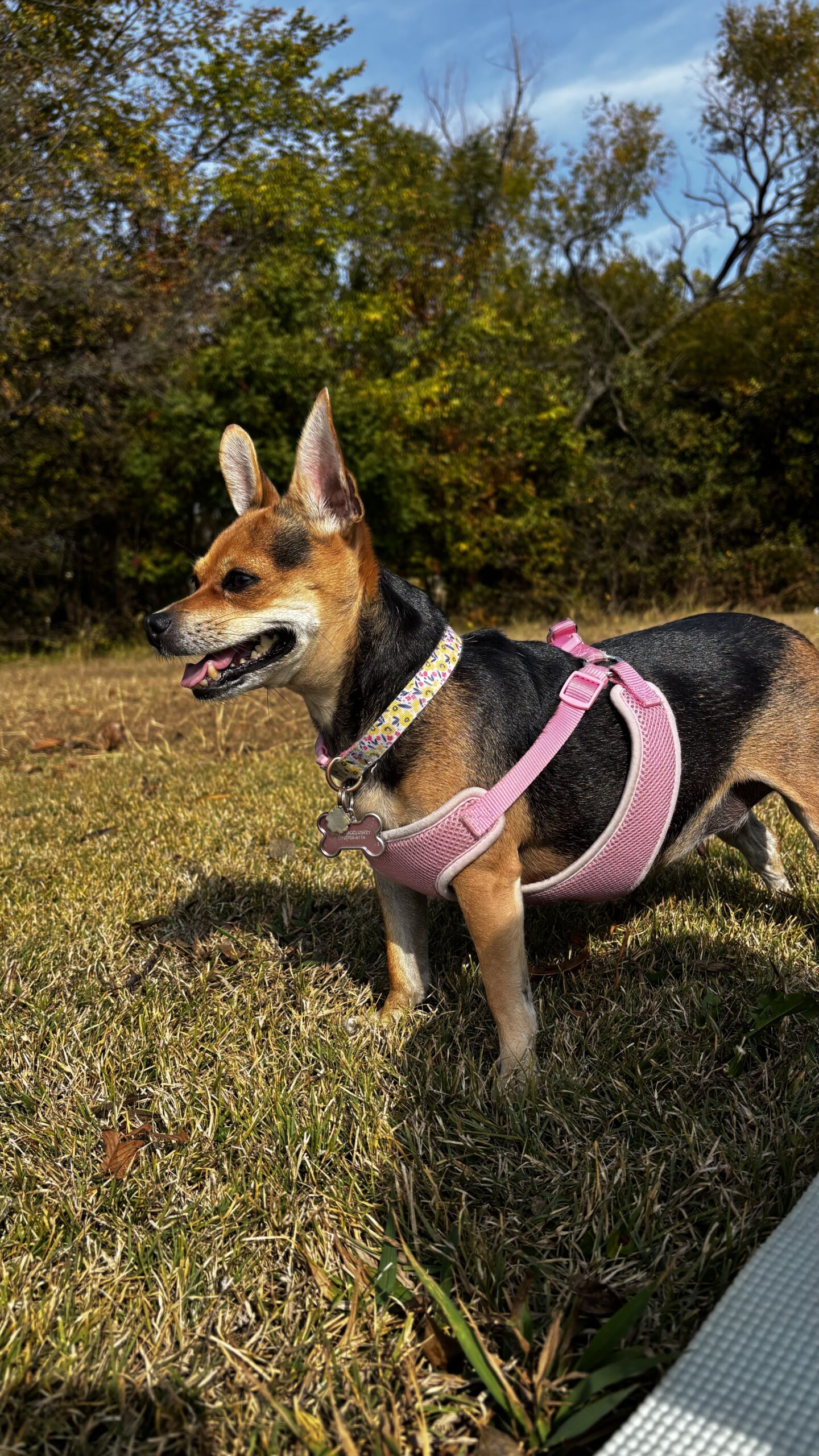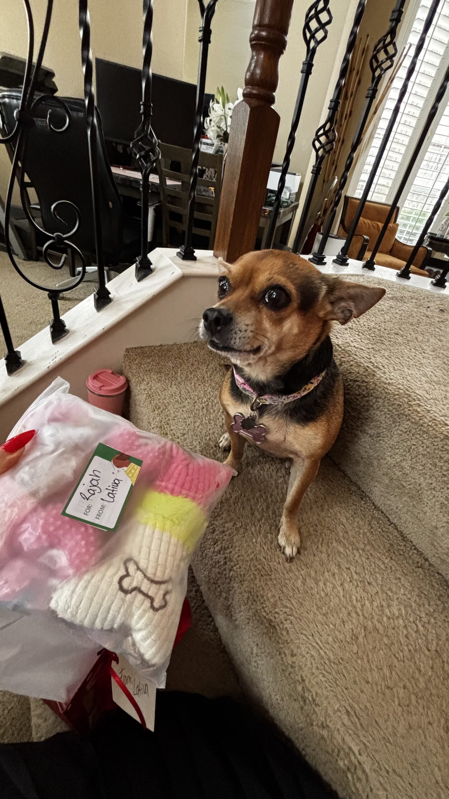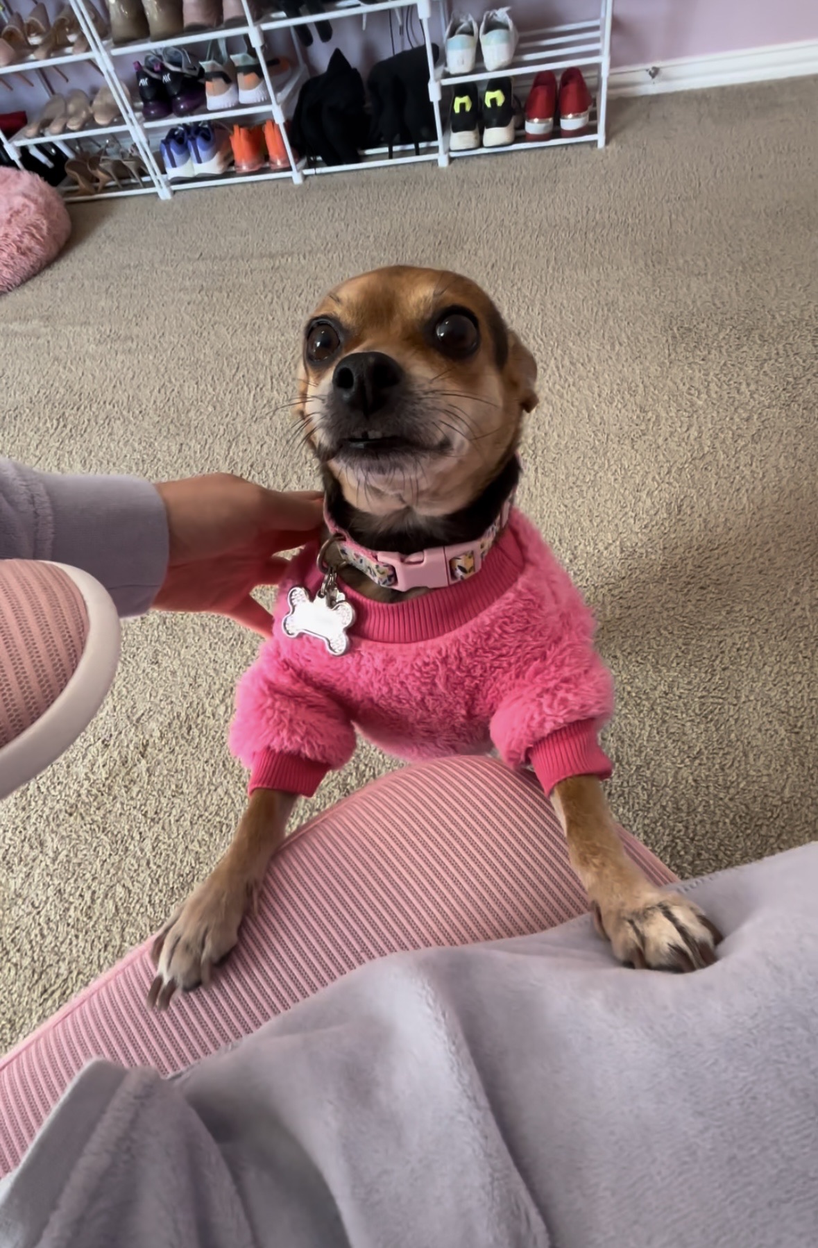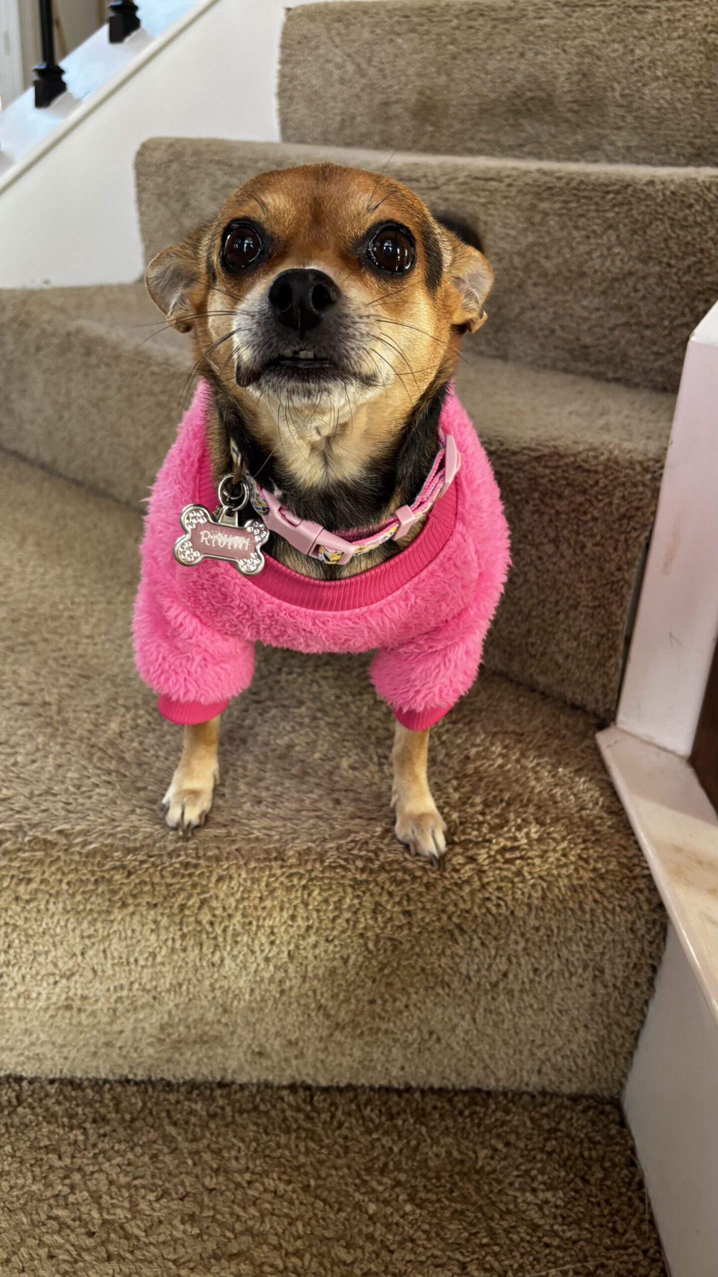Hi, I’m Rajah — a Chipin, which means I’m a mix of Chihuahua and Miniature Doberman Pinscher. I’m about seven years old, and I’ve been stealing hearts ever since. I love cuddles, attention, and soaking up the sun ANY chance I get the chance! 😍